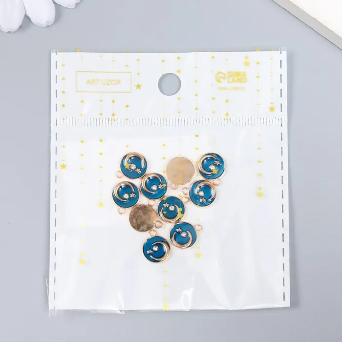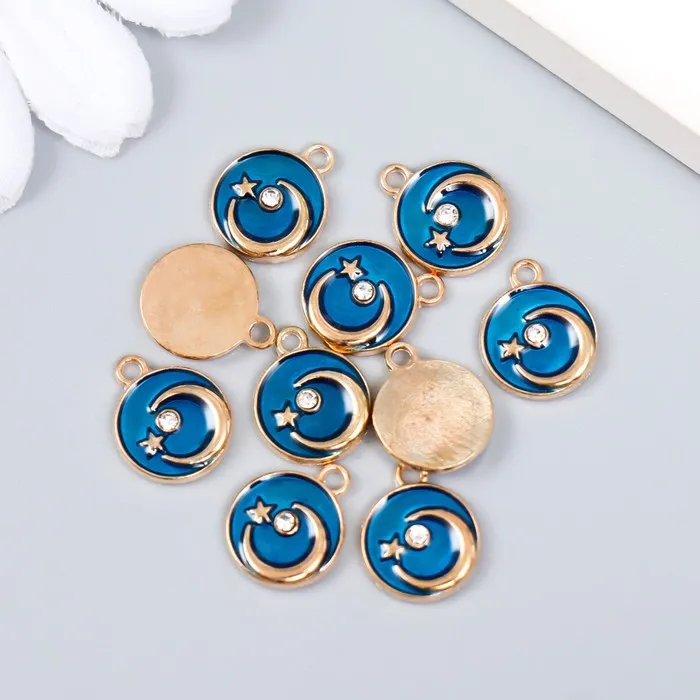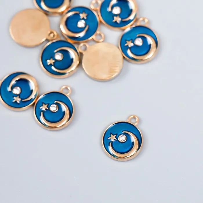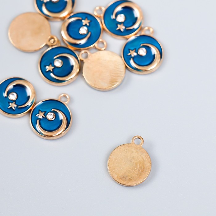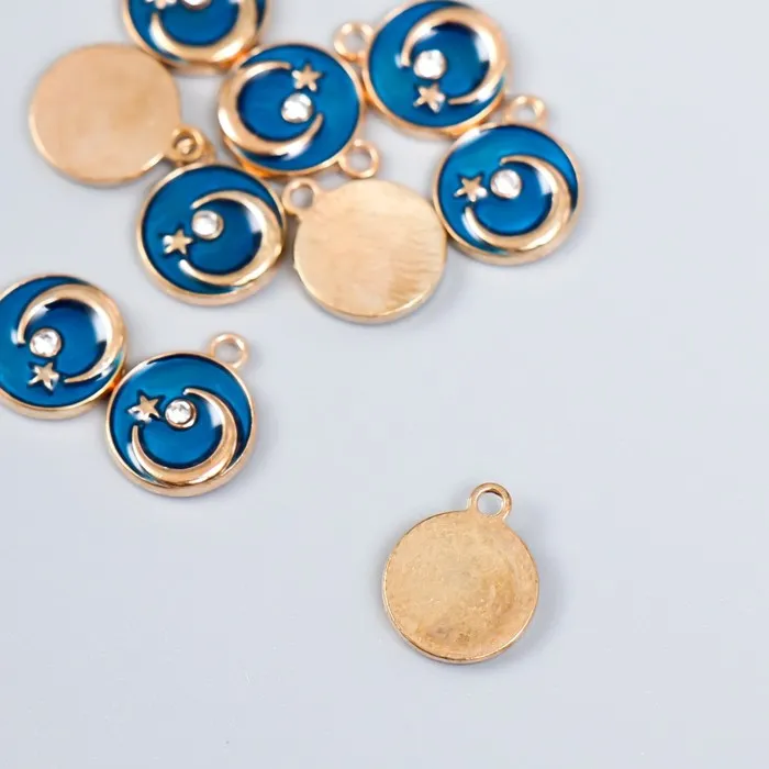 Декор для творчества металл, эмаль «Месяц со звездой», золото, тёмно-синий 1×1.2 см — Характеристики
