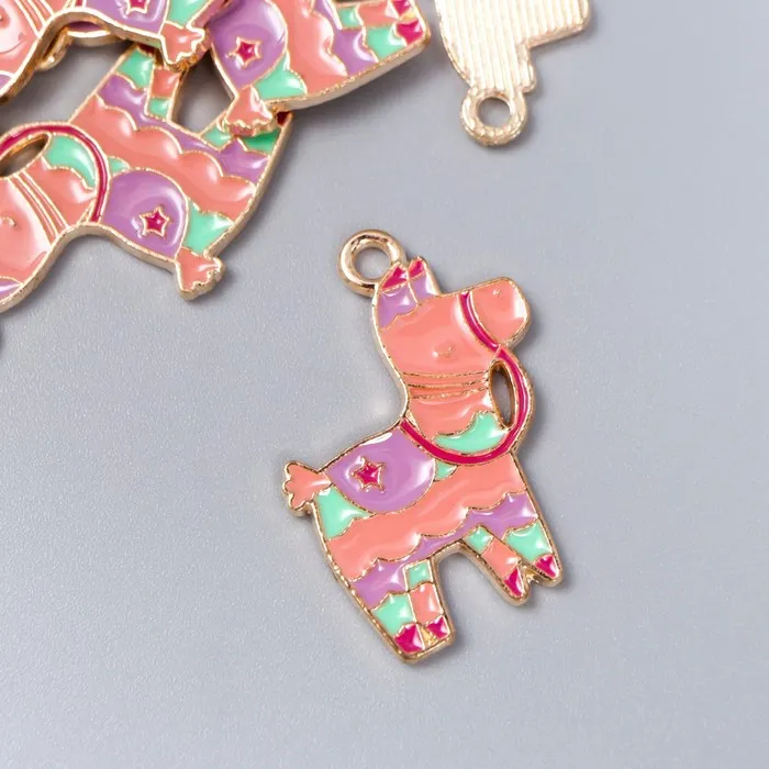 Декор для творчества металл, эмаль «Разноцветный ослик», 2.1×2.7 см