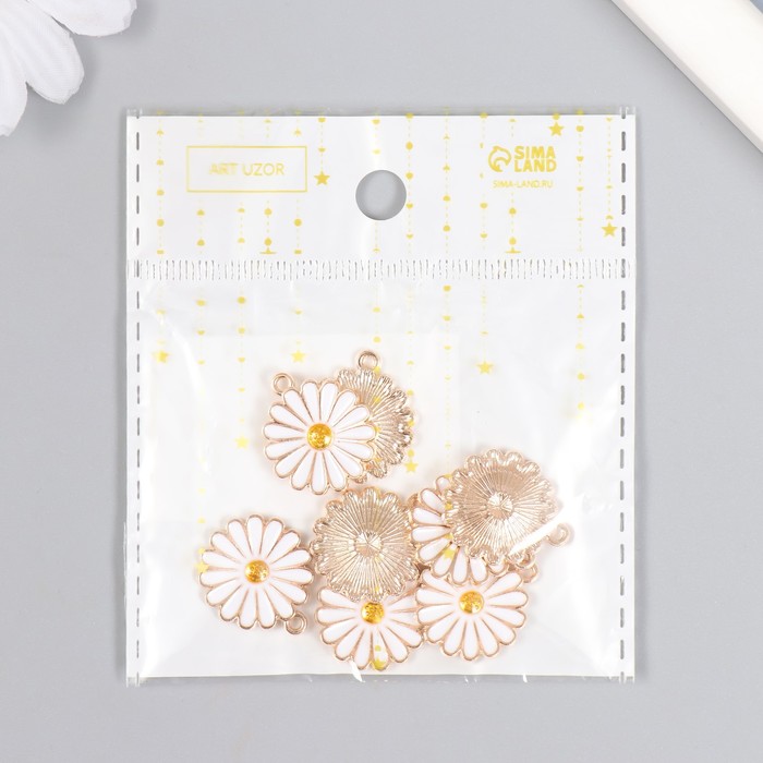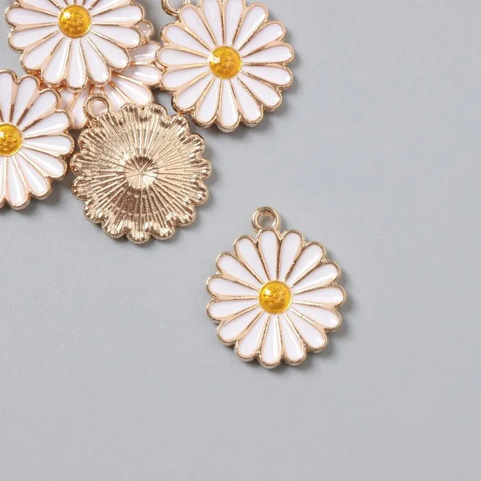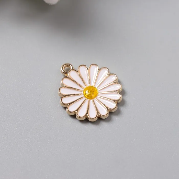Декор для творчества металл, эмаль «Ромашка пышная», 2×1.8 см