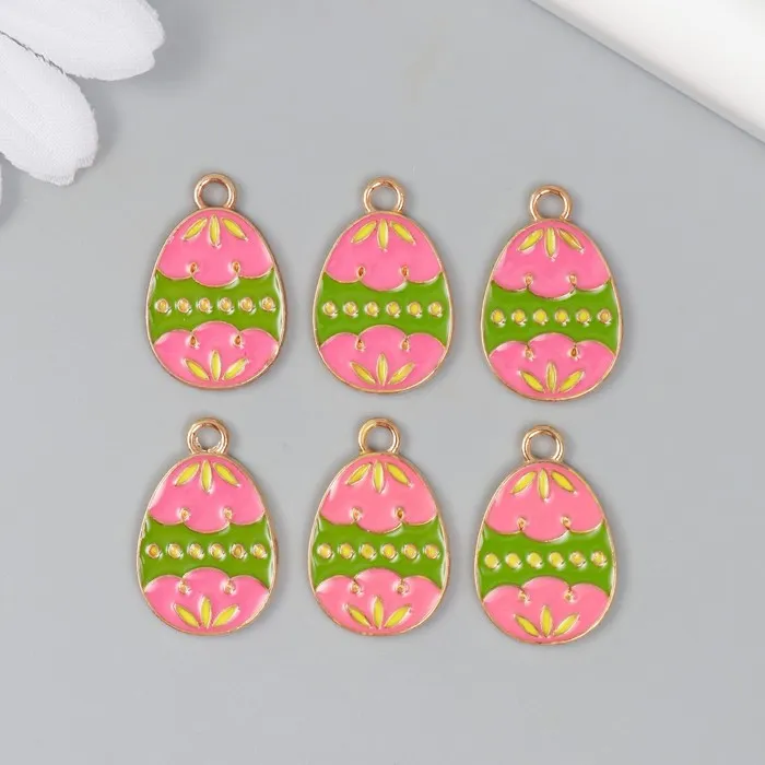 Декор для творчества металл, эмаль "Розово-зелёное яйцо" 1,4х2,2 см