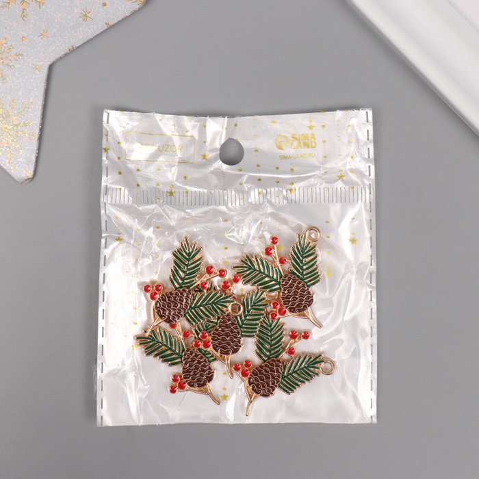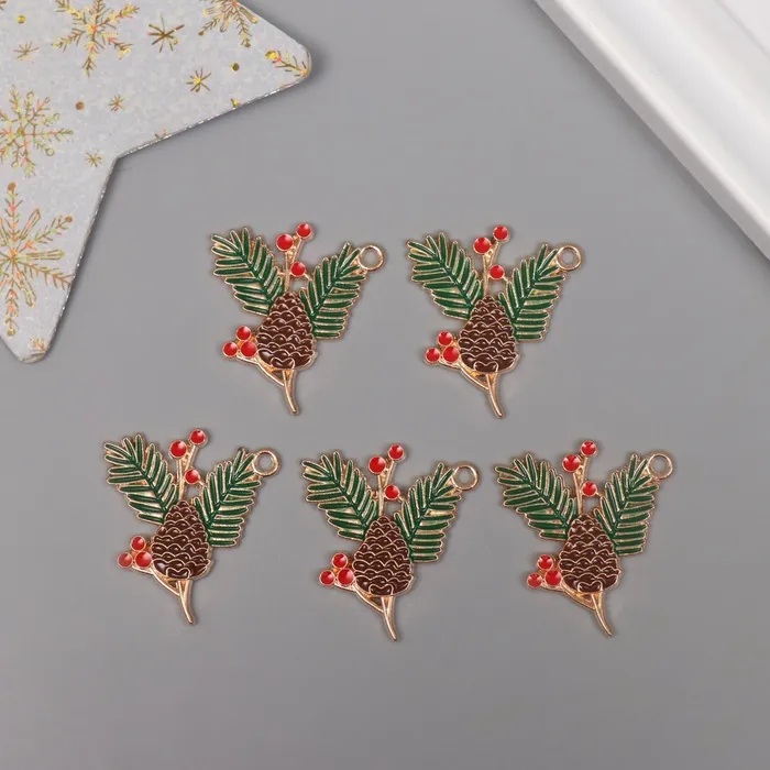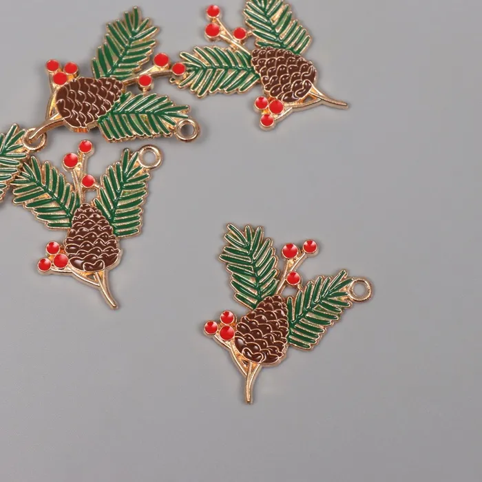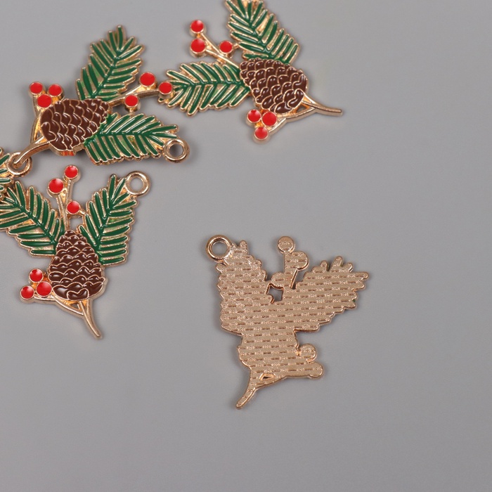 Декор для творчества металл, эмаль «Сосновая ветка», 3.2×2.6 см — Характеристики
