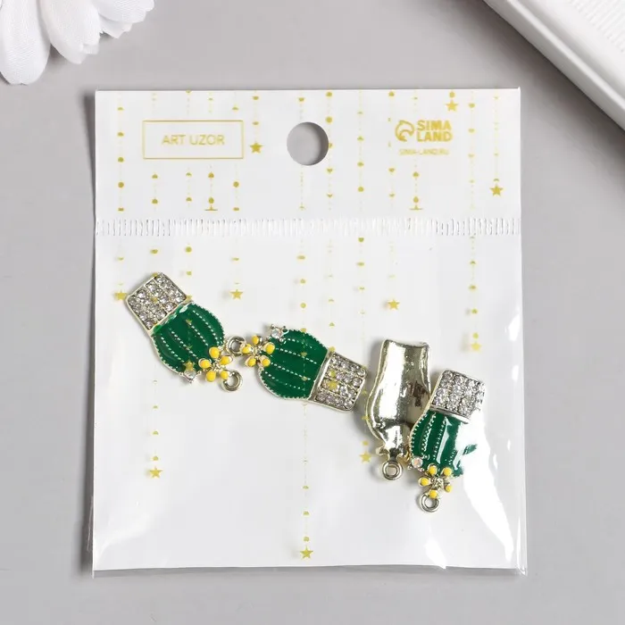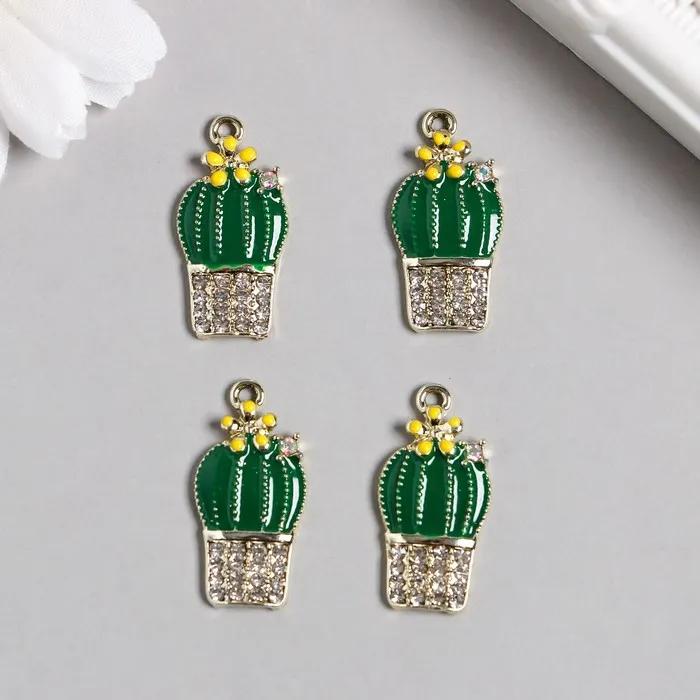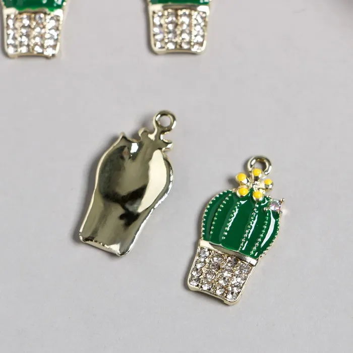 Декор для творчества металл, эмаль, стразы «Кактус в горшке», 1.3×2.6 см — Характеристики