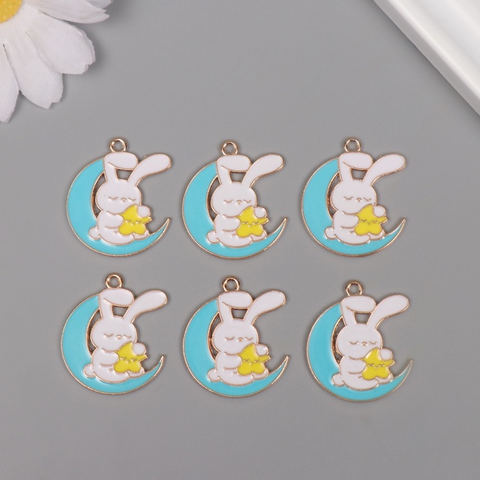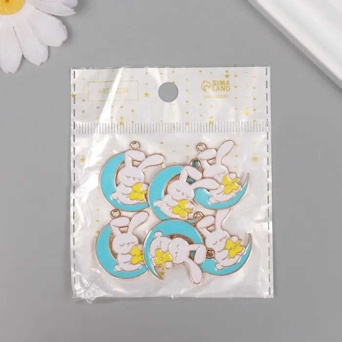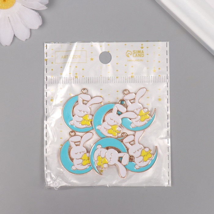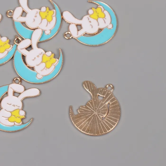 Декор для творчества металл, эмаль "Зайчик на голубом месяце" 2,9х2,5 см — Характеристики