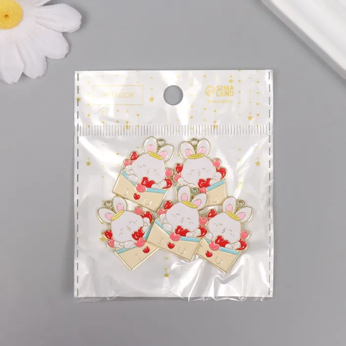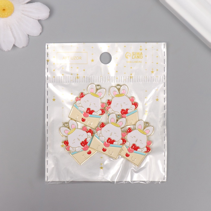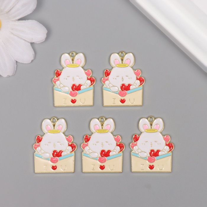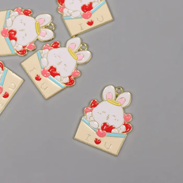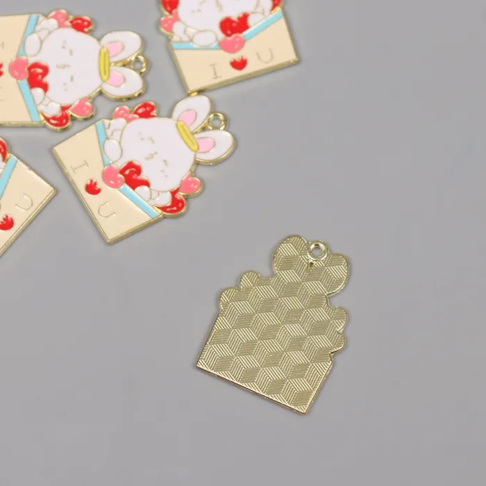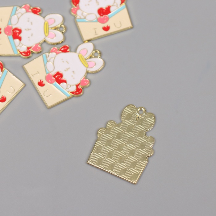 Декор для творчества металл, эмаль "Зайчик с конвертом с сердечками" 2,8х2,2 см — Характеристики