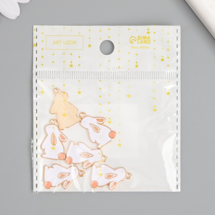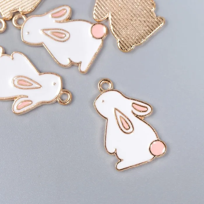 Декор для творчества металл, эмаль "Зайчик с розовым хвостиком" белый 2,2х1,3 см