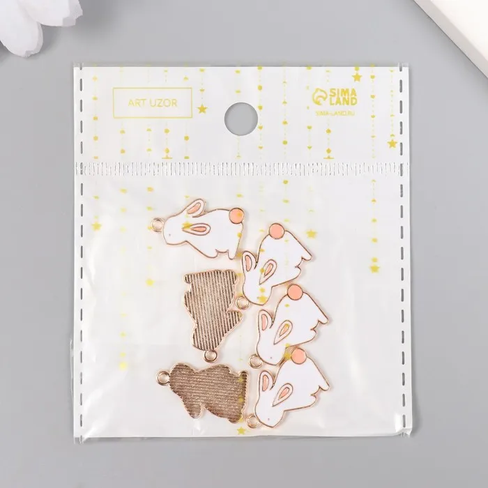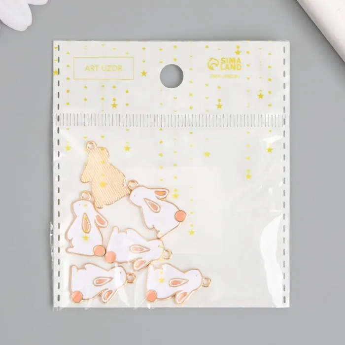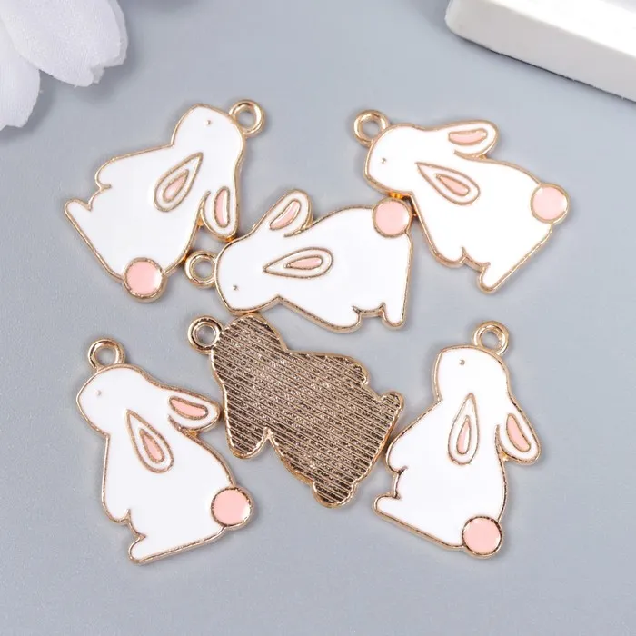 Декор для творчества металл, эмаль "Зайчик с розовым хвостиком" белый 2,2х1,3 см — Характеристики