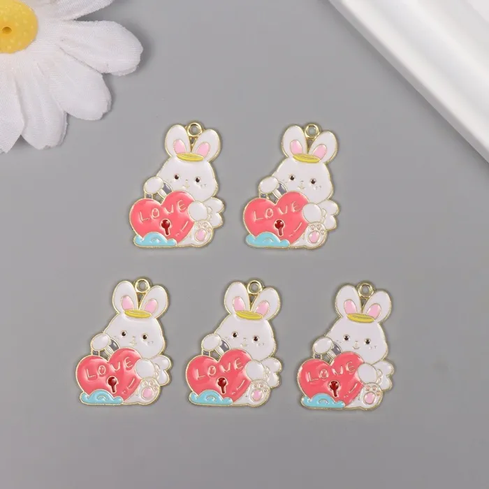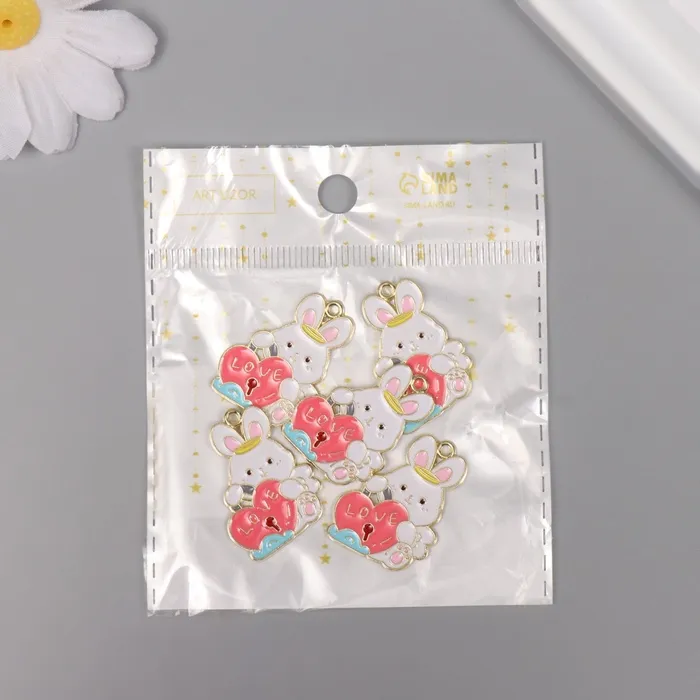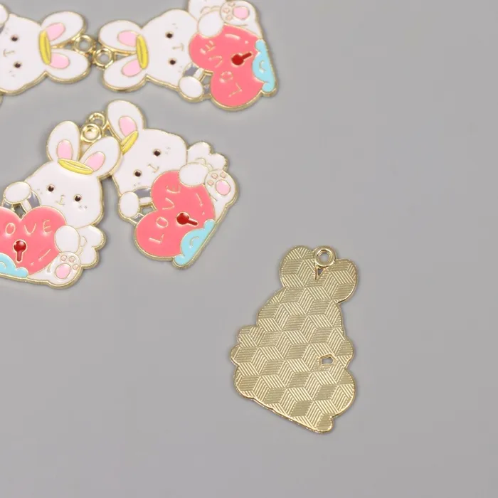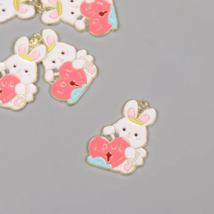 Декор для творчества металл, эмаль "Зайчик с сердцем-замком" 2,8х2,2 см — Характеристики