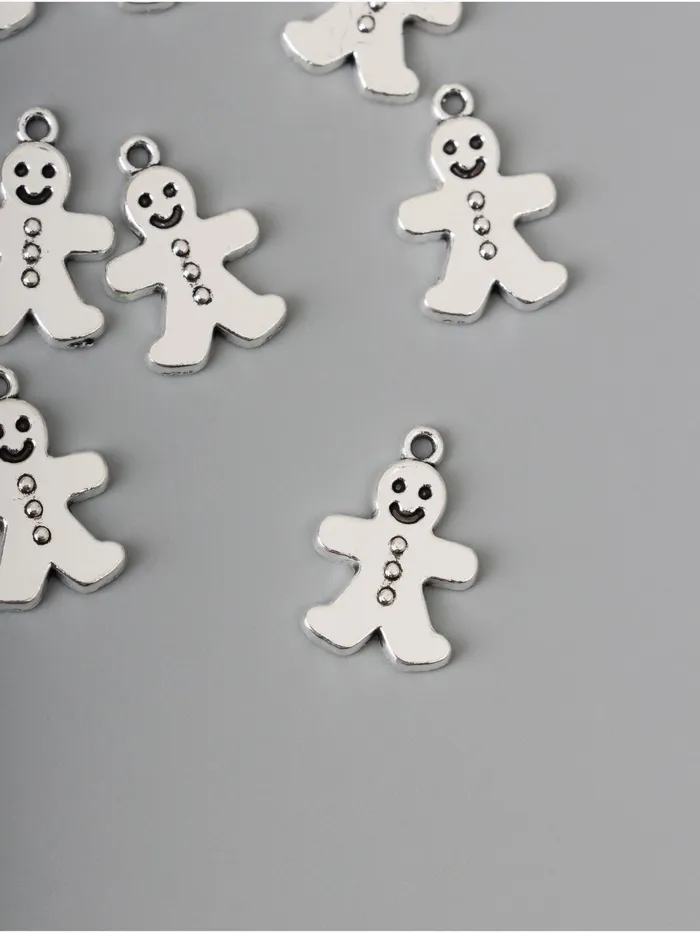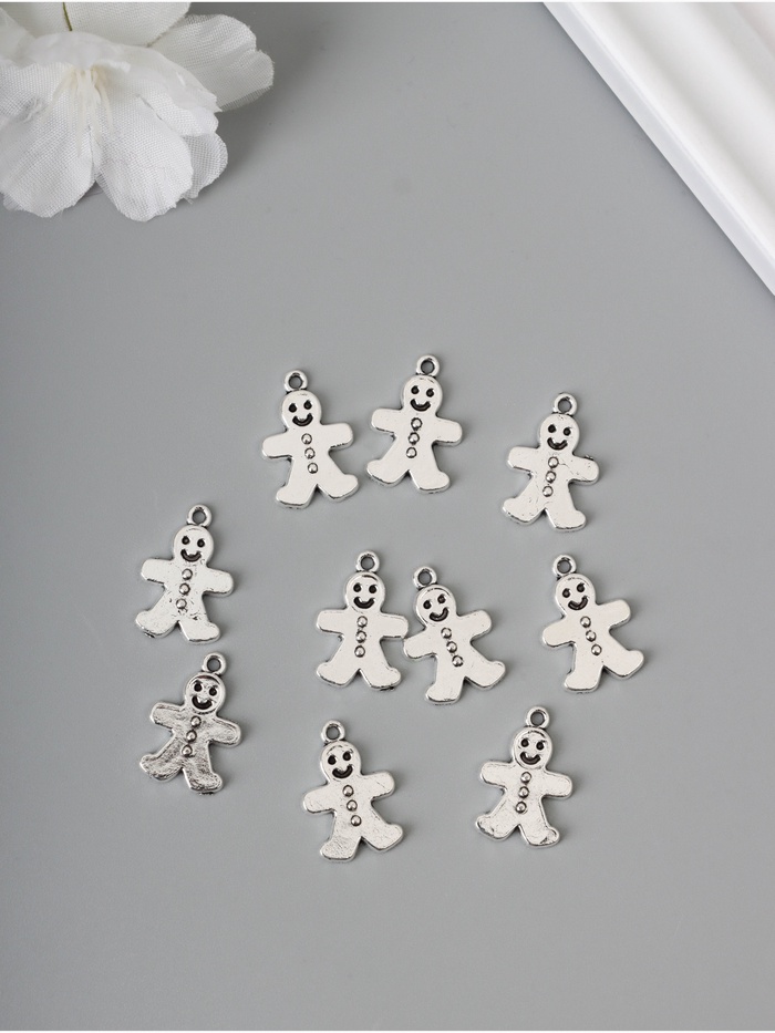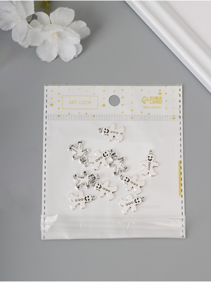 Декор для творчества металл "Имбирный пряник" серебро набор 10 шт 1,9х1,1х0,2 см — Характеристики