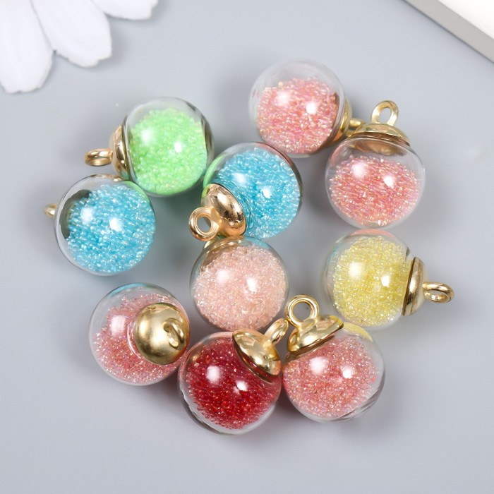 Подвеска для творчества пластик «Шар - микробисер», набор 10 шт., 2.1×1.6×1.6 см, МИКС