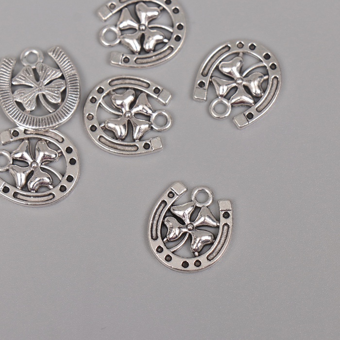 Металлический элемент, декоративная подвеска «Арт Узор. Подкова с клевером», серебро, набор 6 шт., 1.1×1.4 см