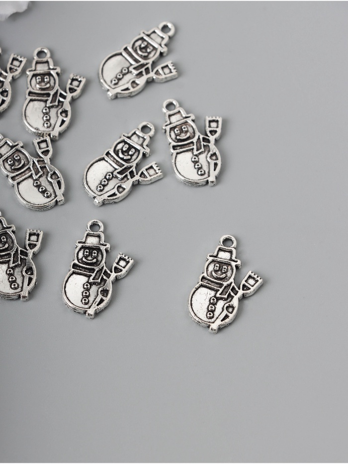 Декор для творчества металл "Снеговик с метёлкой" серебро набор 10 шт 2,1х1,3х0,2 см