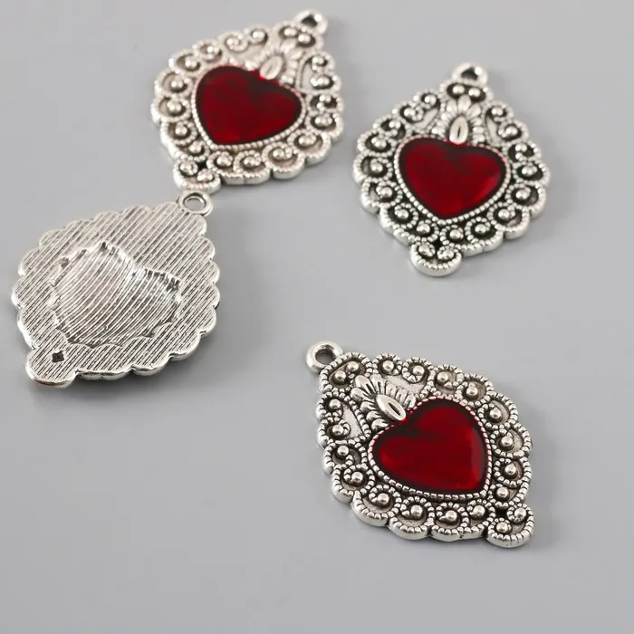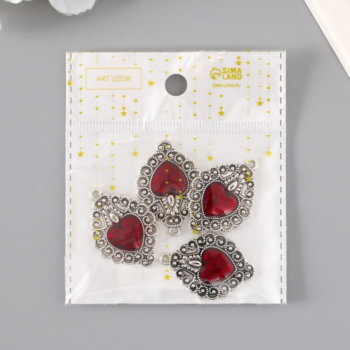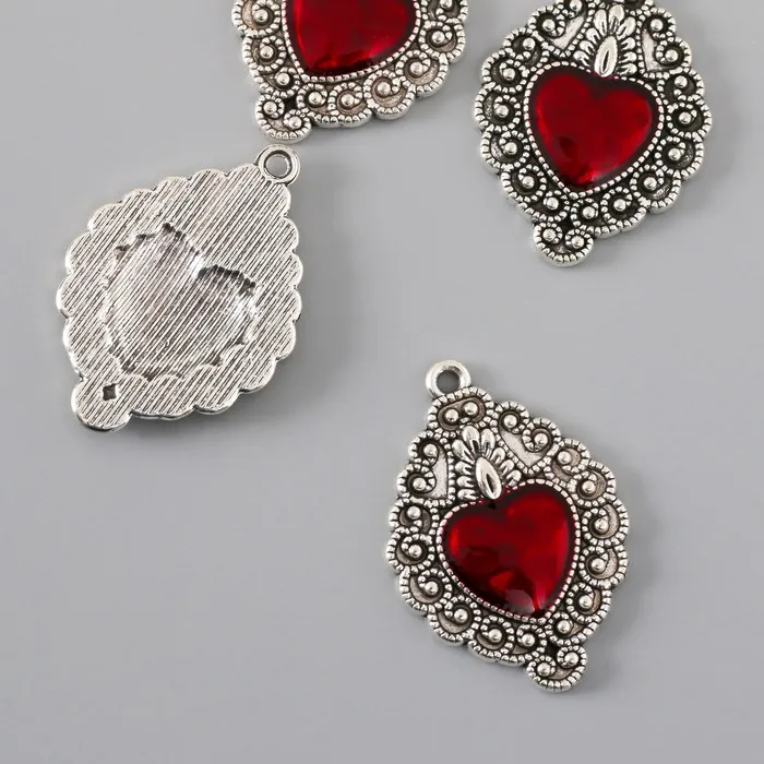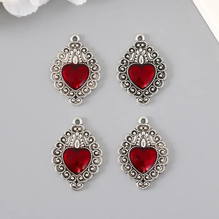 Декор для творчества металл «Красное сердце ажур», серебро, эмаль, 3.5×2.4 см — Характеристики