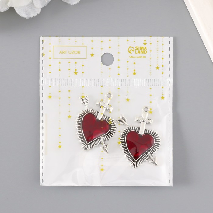 Декор для творчества металл «Красное сердце стрела», серебро, эмаль, 3.9×3.4 см — Характеристики