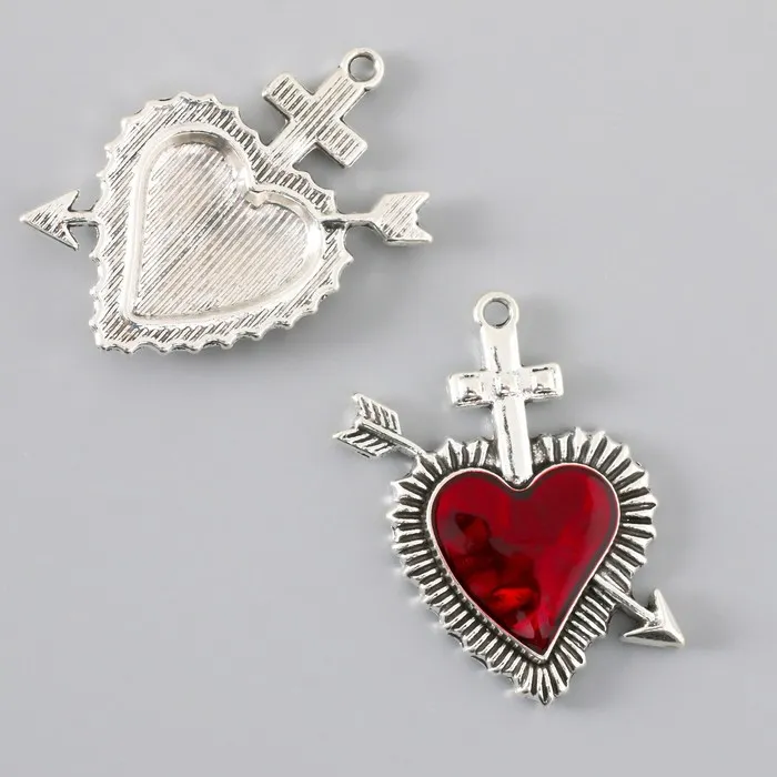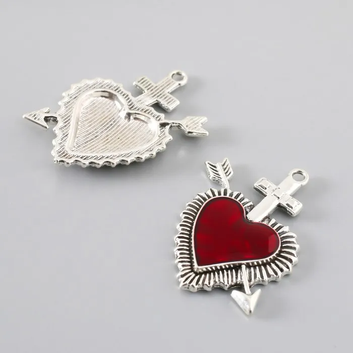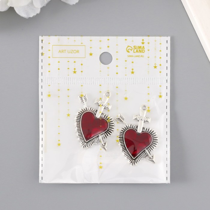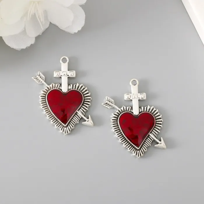 Декор для творчества металл «Красное сердце стрела», серебро, эмаль, набор 2 шт., 3.9×3.4 см — Характеристики