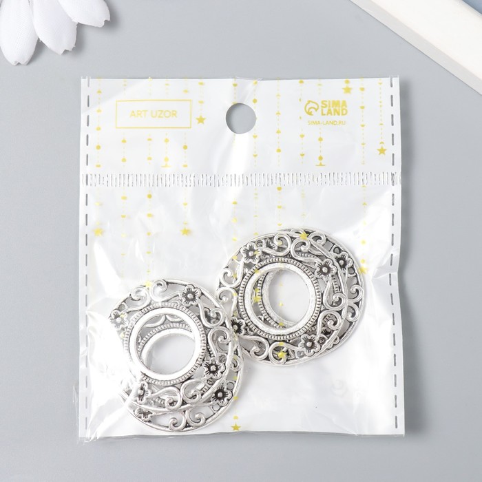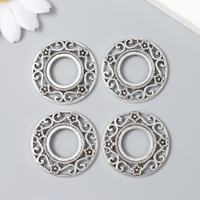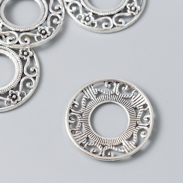 Декор для творчества металл "Круглая рамка цветочная" серебро 3,3х3,3 см — Характеристики