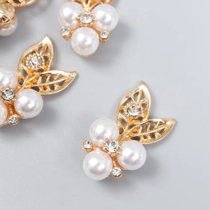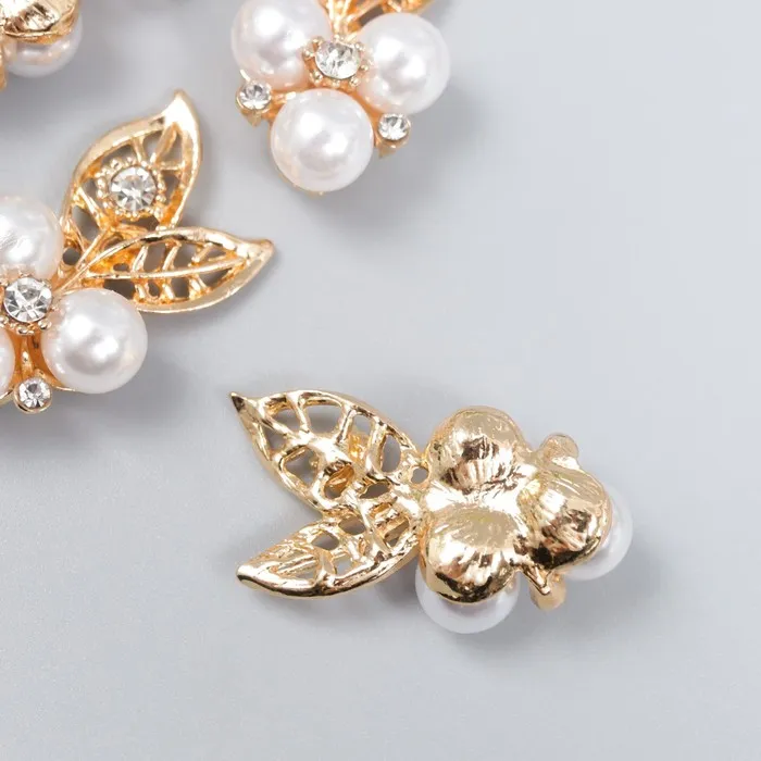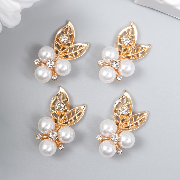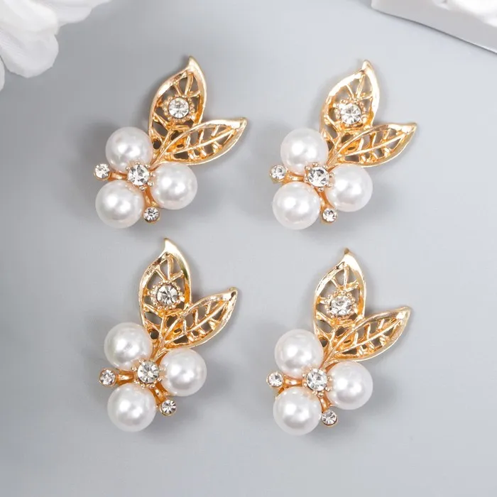 Декор для творчества металл «Листочки с жемчужинками», стразы набор 4 шт., 3.2×2 см