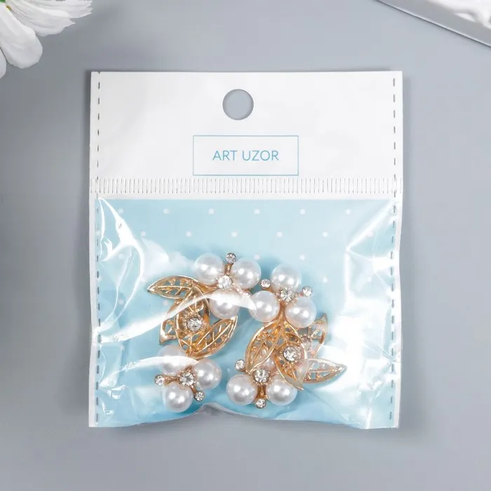 Декор для творчества металл «Листочки с жемчужинками», стразы набор 4 шт., 3.2×2 см — Характеристики