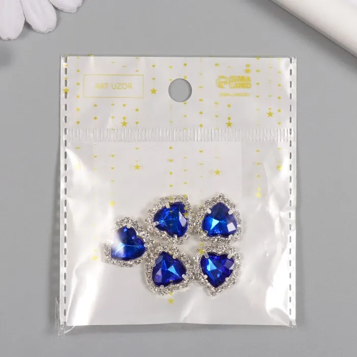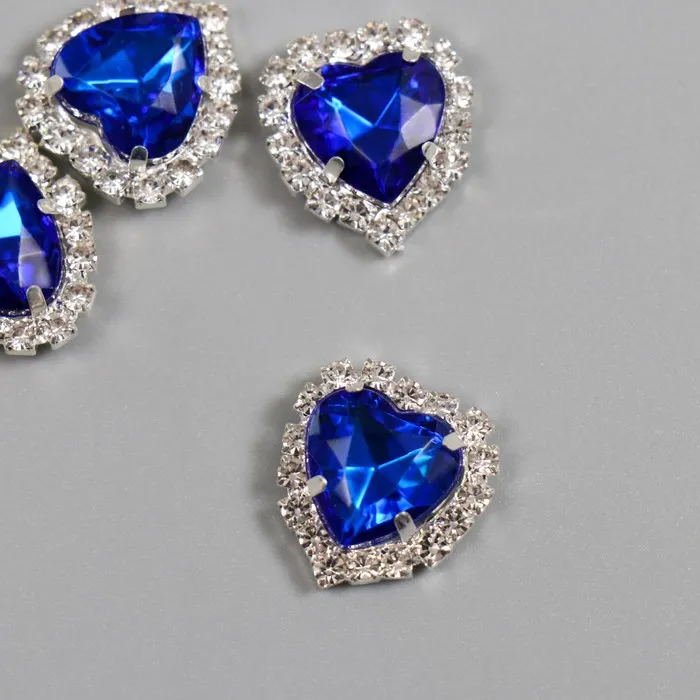Декор для творчества металл «Медальон сердце в стразах», синий, 1.8×1.7 см — Характеристики