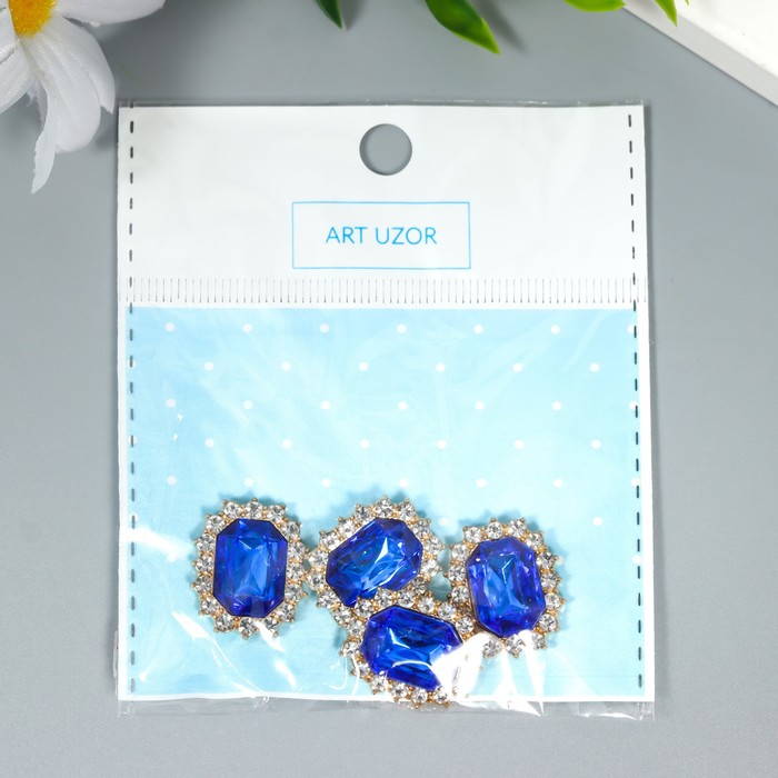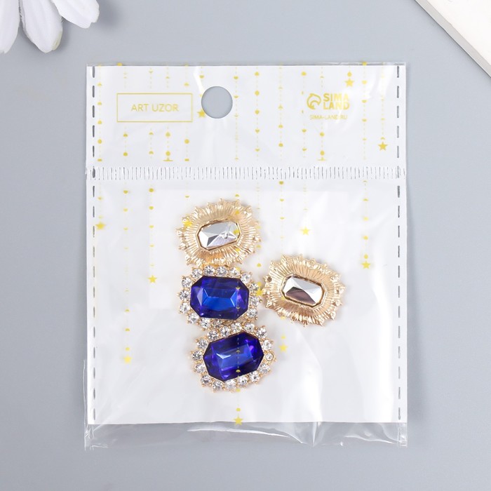 Декор для творчества металл "Медальон восьмиугольный" ярко-синий кристалл стразы 2х1,5 см — Характеристики