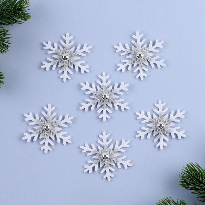 Декор «Новогодняя снежинка», белый с серебром, набор 6 шт.