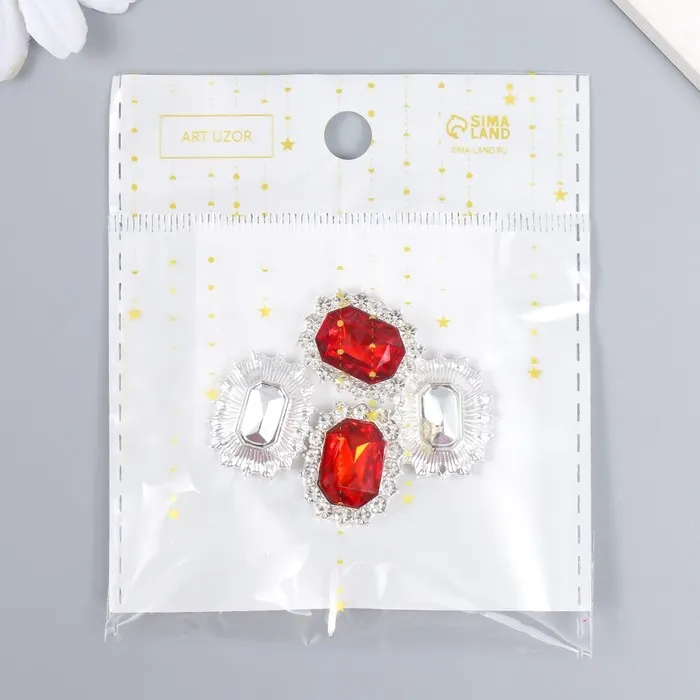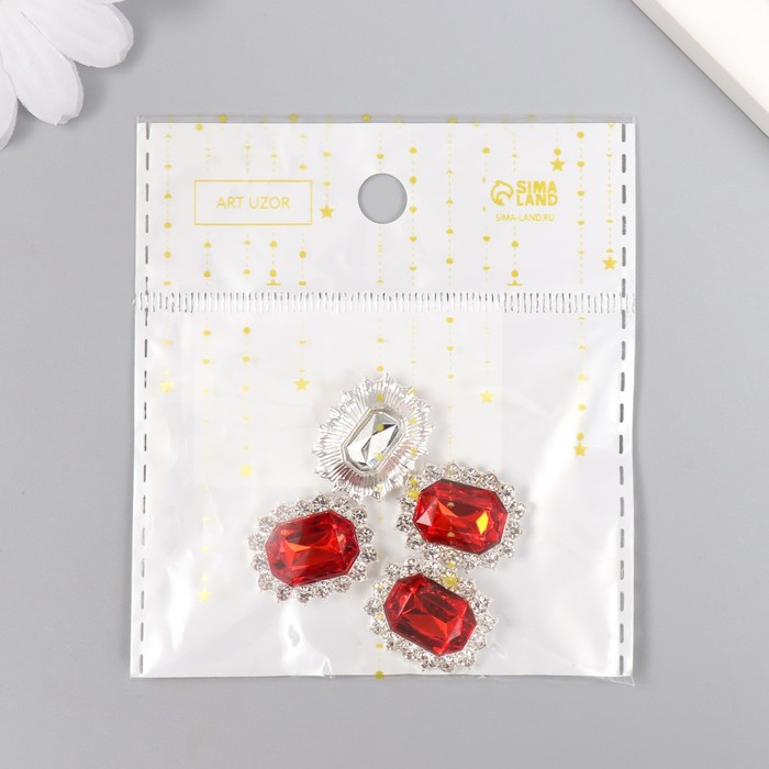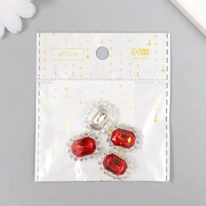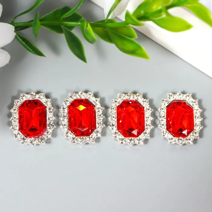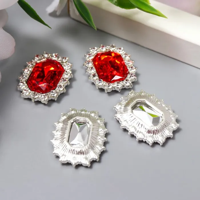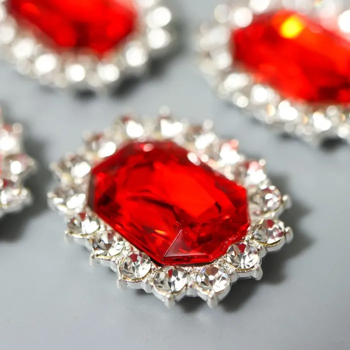 Декор для творчества металл «Медальон восьмиугольный», красный кристалл стразы, 2×1.5 см — Характеристики