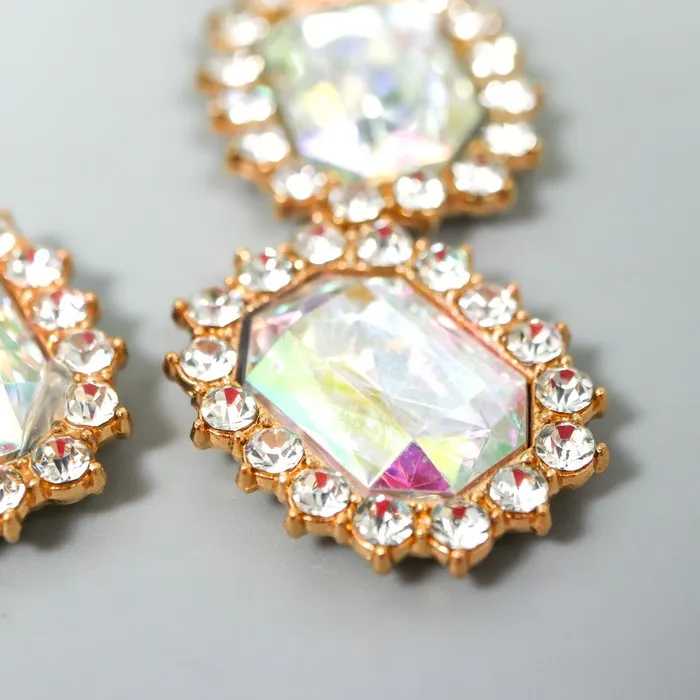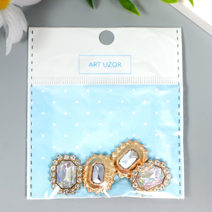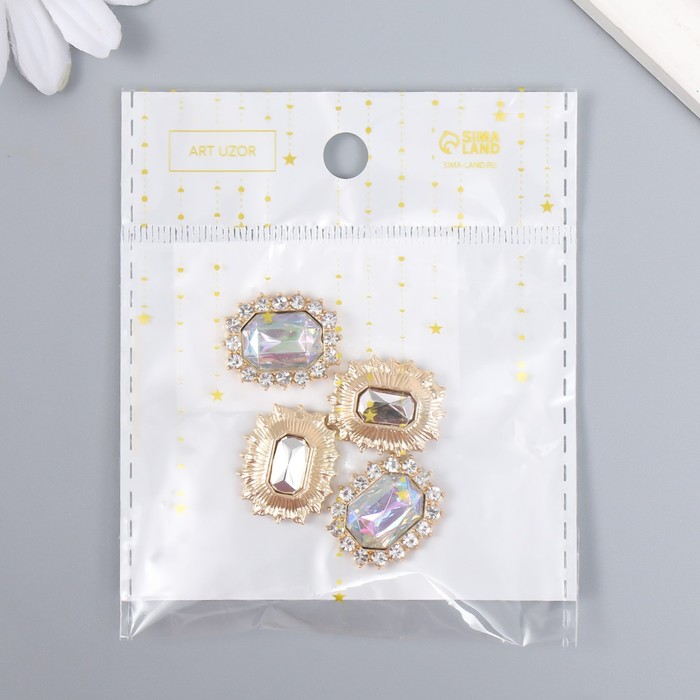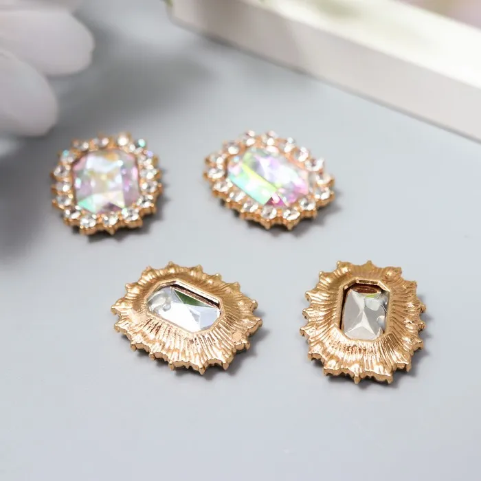 Декор для творчества металл «Медальон восьмиугольный», нежно-голубой кристалл стразы, 2×1.5 см