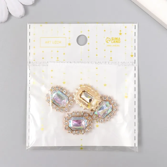 Декор для творчества металл «Медальон восьмиугольный», нежно-голубой кристалл стразы, 2×1.5 см — Характеристики