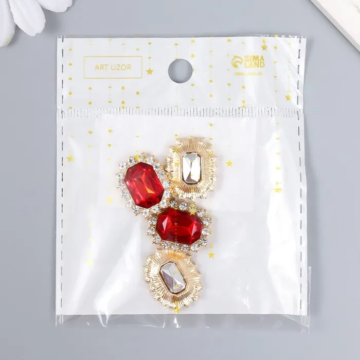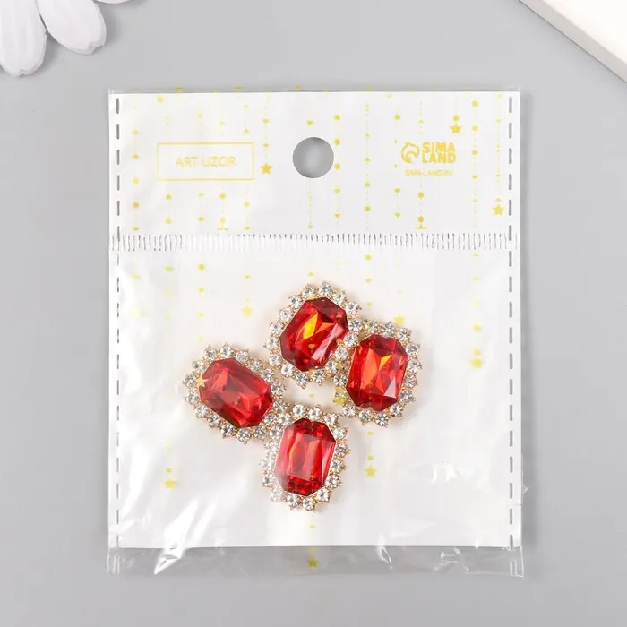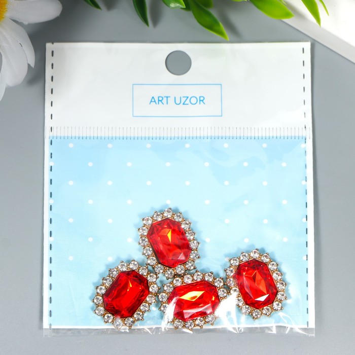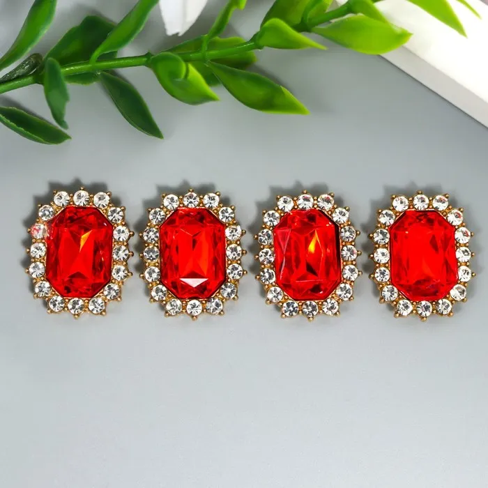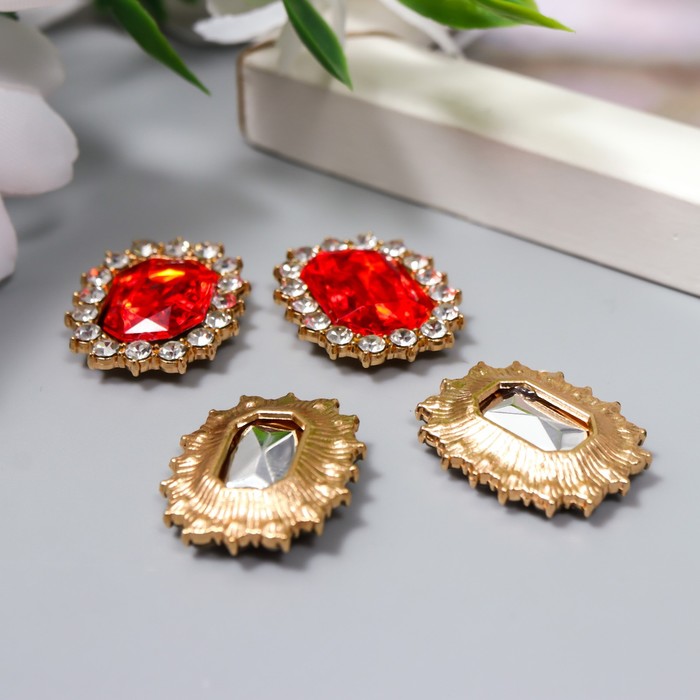 Декор для творчества металл «Медальон восьмиугольный», рубин кристалл стразы, 2×1.5 см — Характеристики