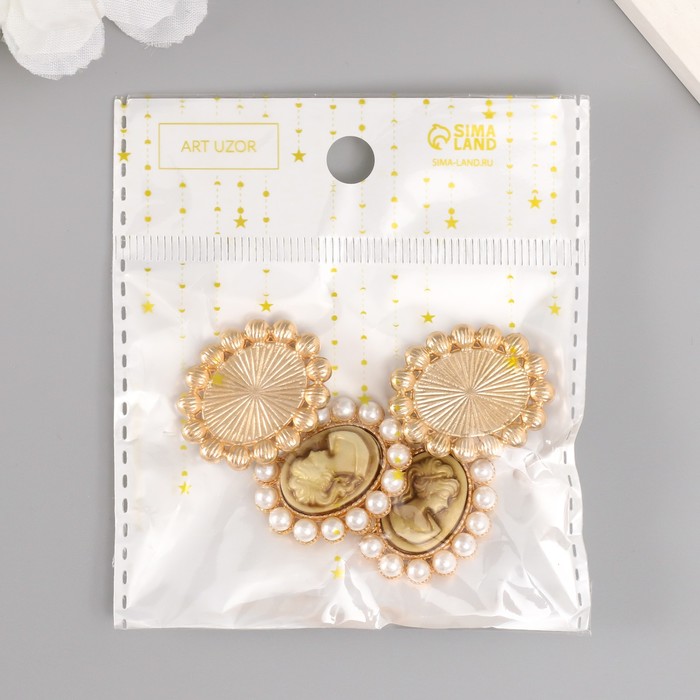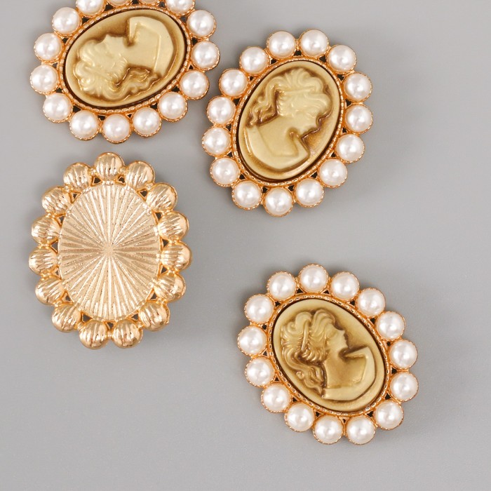 Декор для творчества металл, пластик «Девушка камея», 2.8×2.4×0.5 см