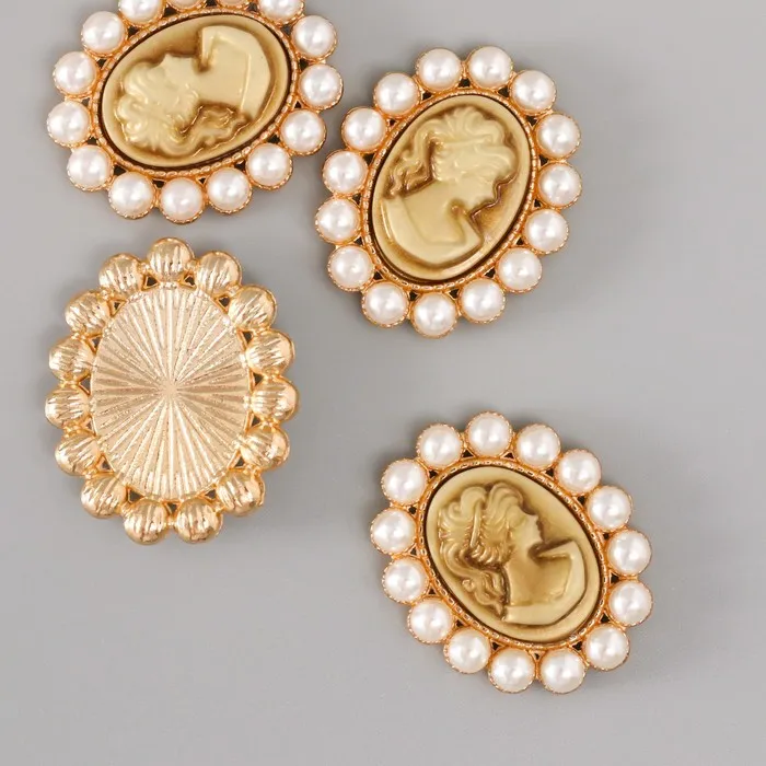 Декор для творчества металл, пластик «Девушка камея», 2.8×2.4×0.5 см — Характеристики