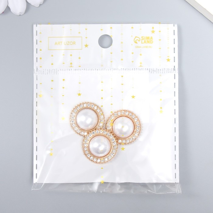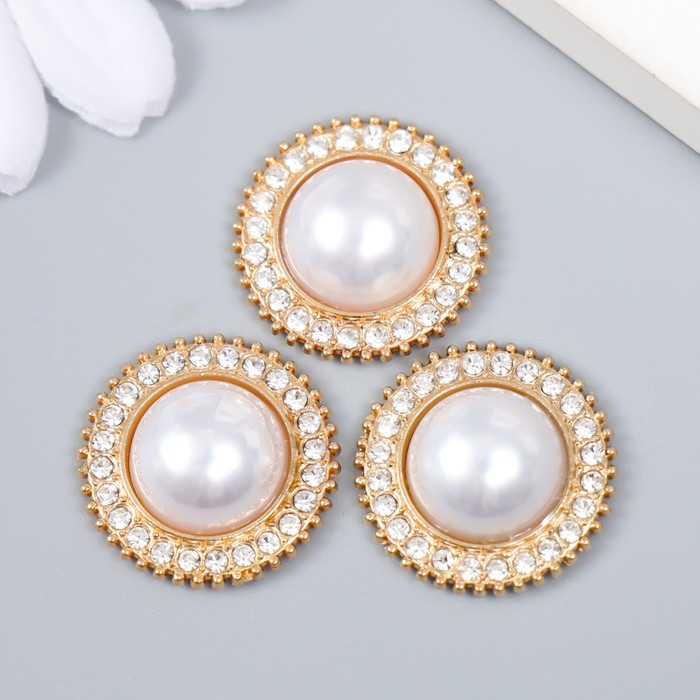 Декор для творчества металл, пластик "Жемчужинка в окантовке" стразы, золото н-р 3 шт 2х2 см