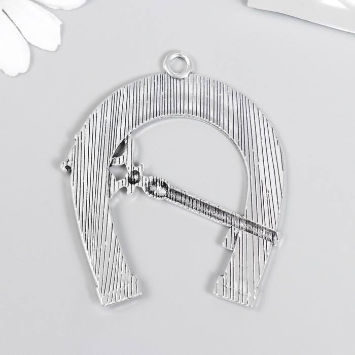 Декор для творчества металл "Подкова с ключиком" серебро 6,2х5,1 см
