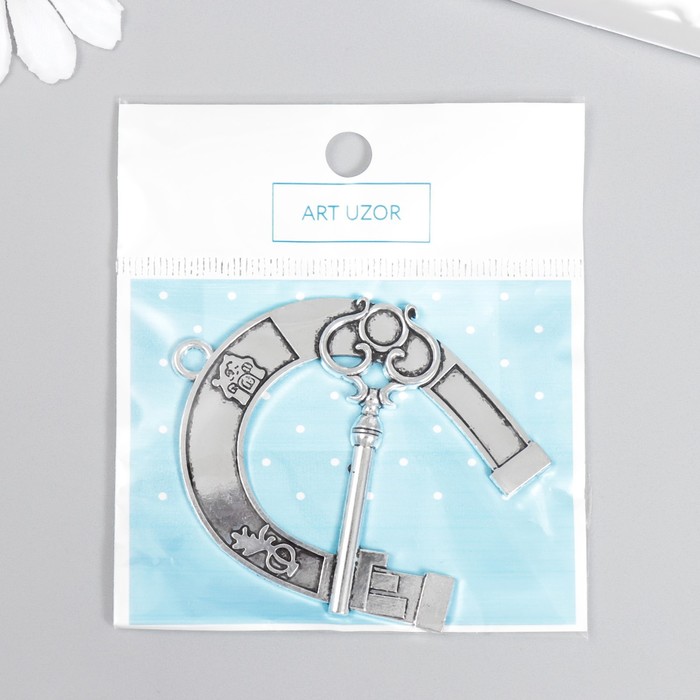 Декор для творчества металл "Подкова с ключиком" серебро 6,2х5,1 см — Характеристики