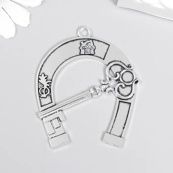 Декор для творчества металл "Подкова с ключиком" серебро 6,2х5,1 см — Характеристики