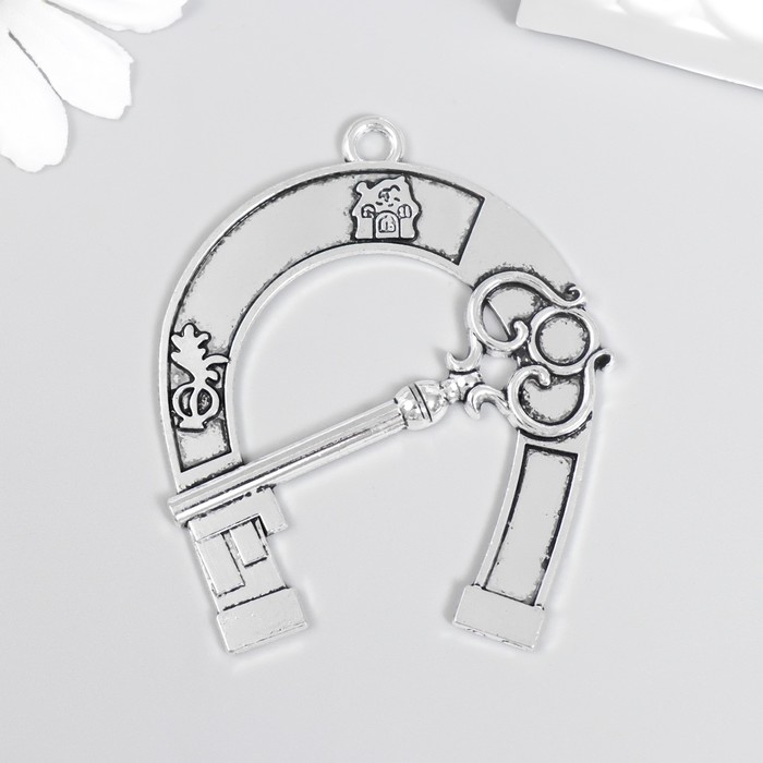 Декор для творчества металл "Подкова с ключиком" серебро 6,2х5,1 см