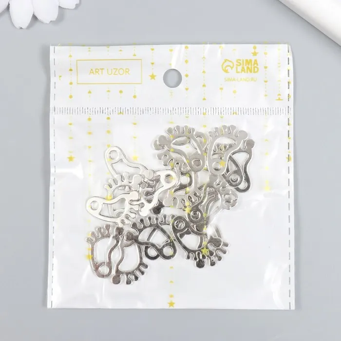 Декор для творчества металл «След», набор 20 шт., серебро, 1.4×2.2 см — Характеристики