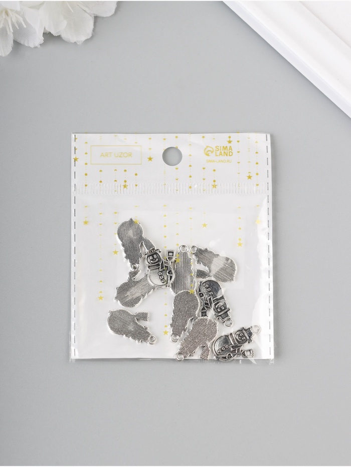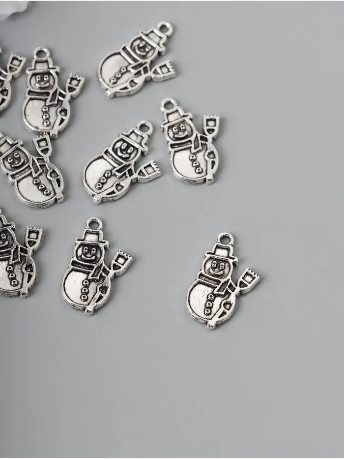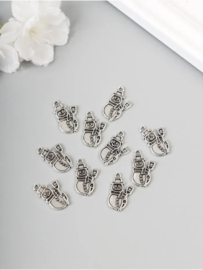 Декор для творчества металл "Снеговик с метёлкой" серебро набор 10 шт 2,1х1,3х0,2 см — Характеристики