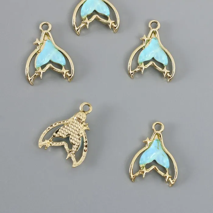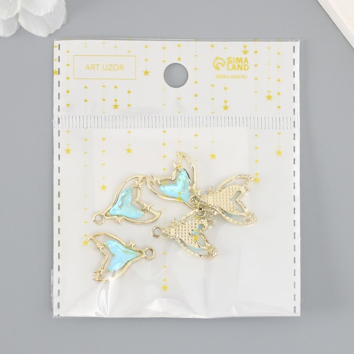 Декор для творчества металл, страз «Хвост русалки», голубой, 2.1×1.6 см