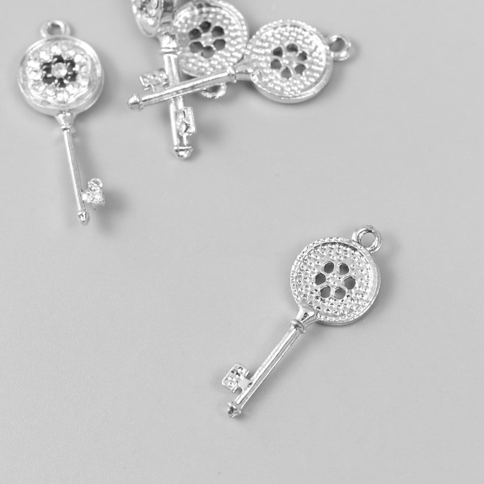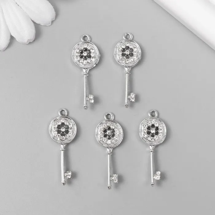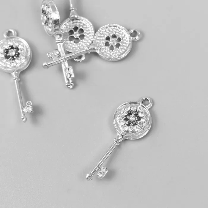Декор для творчества металл, стразы "Ключ с цветочком" серебро 3х1,1 см