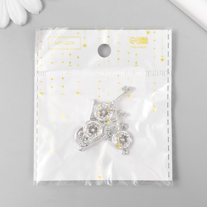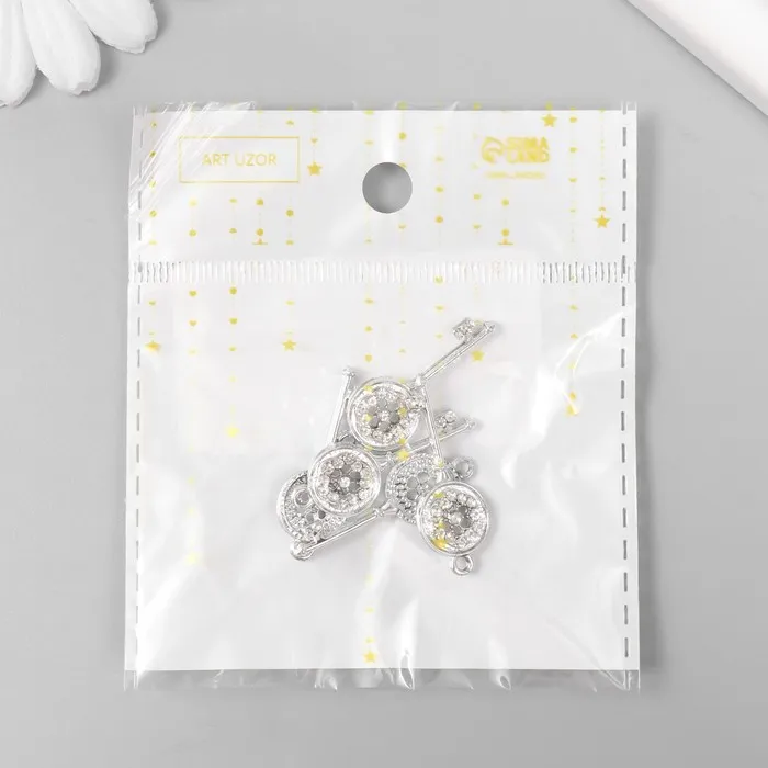 Декор для творчества металл, стразы "Ключ с цветочком" серебро 3х1,1 см — Характеристики