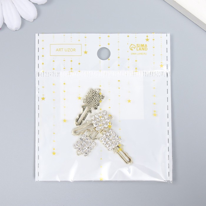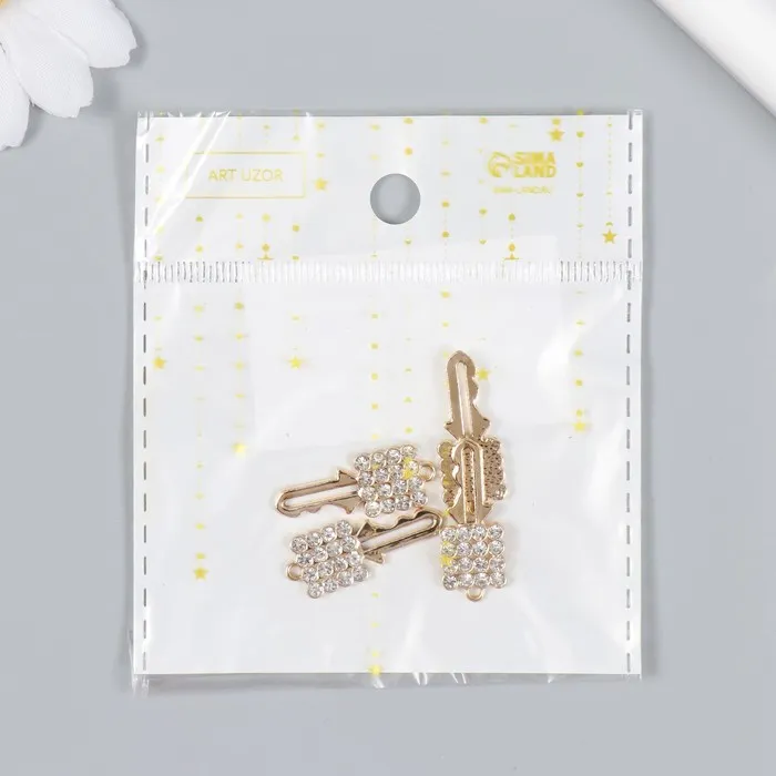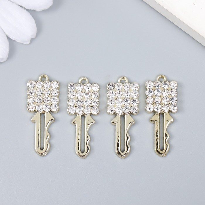 Декор для творчества металл, стразы «Ключик», золото, 2.5×0.9 см — Характеристики