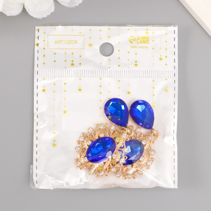 Декор для творчества металл, стразы «Кристалл в цветке с подвеской», 5.5×2.8×0.7 см — Характеристики