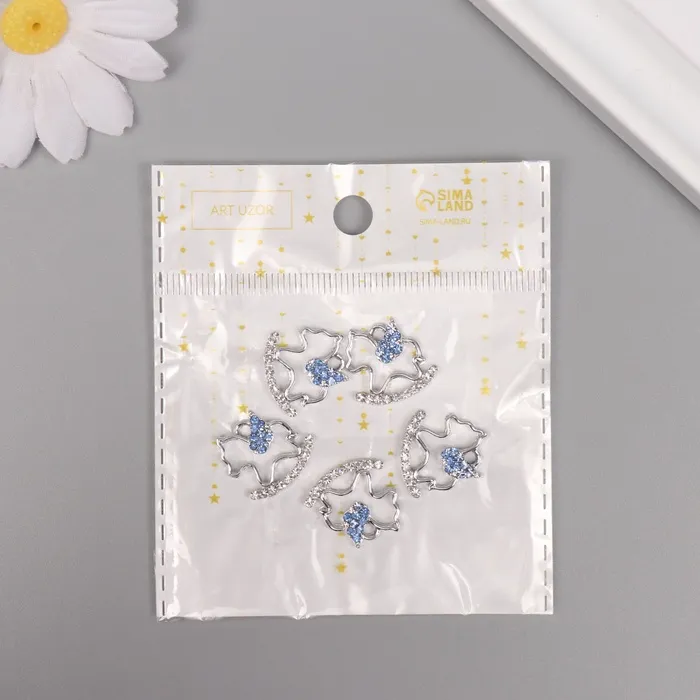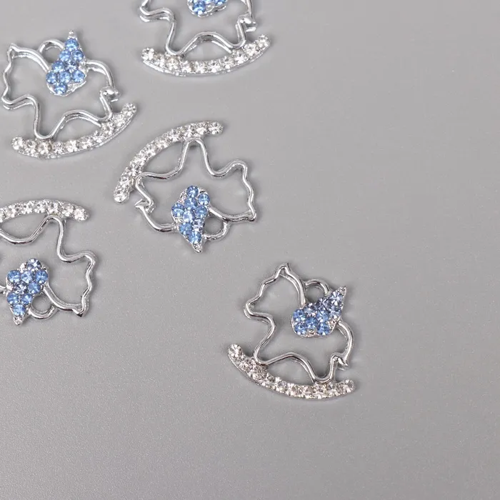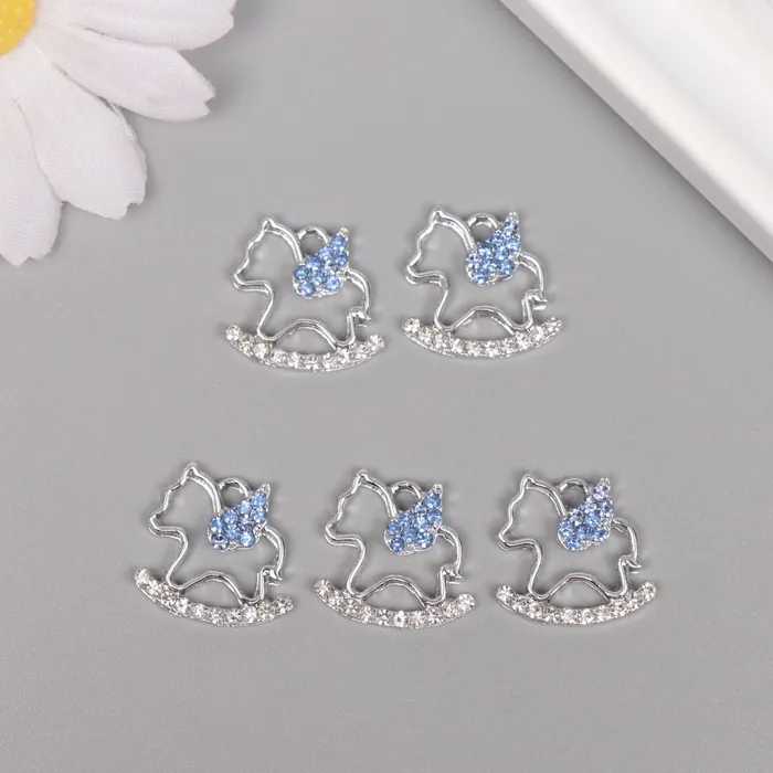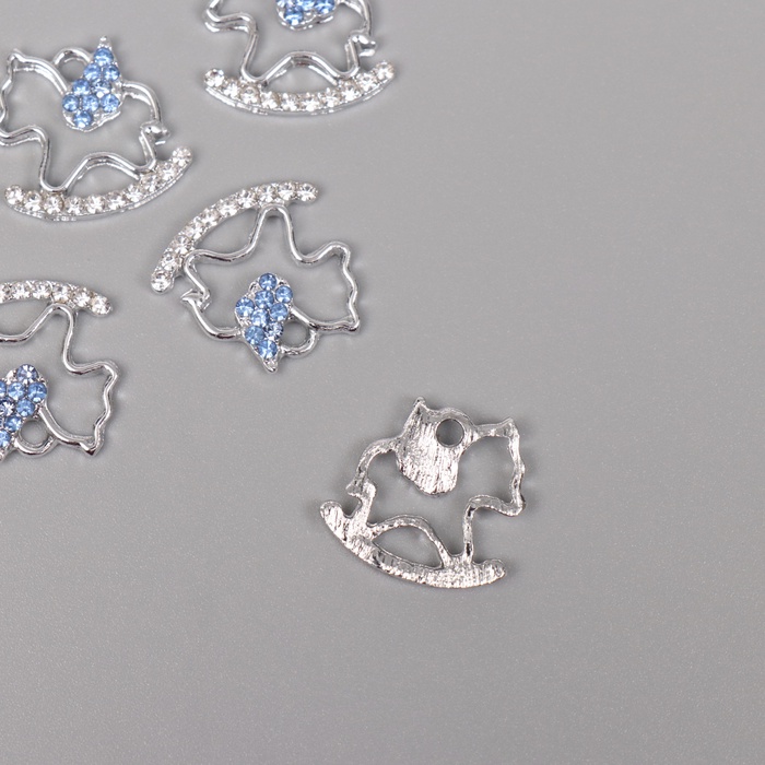 Декор для творчества металл, стразы «Лошадка с подушкой», серебро, голубой, 1.7×1.8×0.3 см — Характеристики