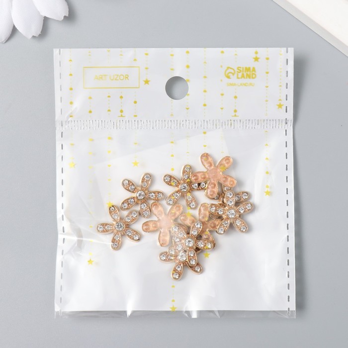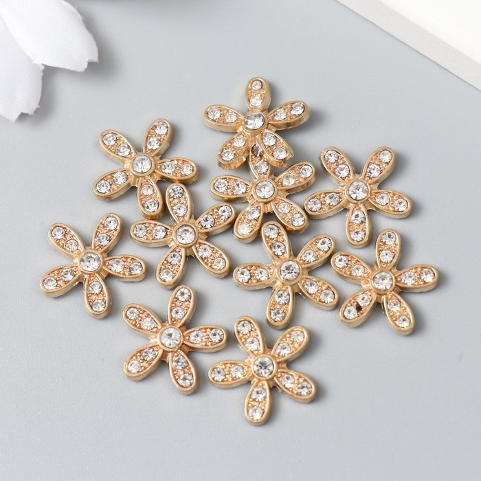 Декор для творчества металл, стразы «Ромашка», набор 10 шт., золото, 1.5×1.5 см
