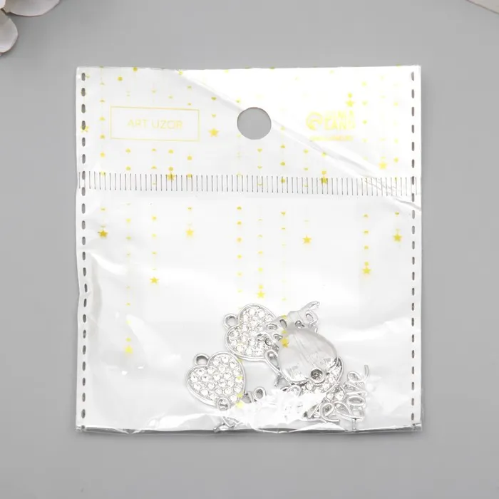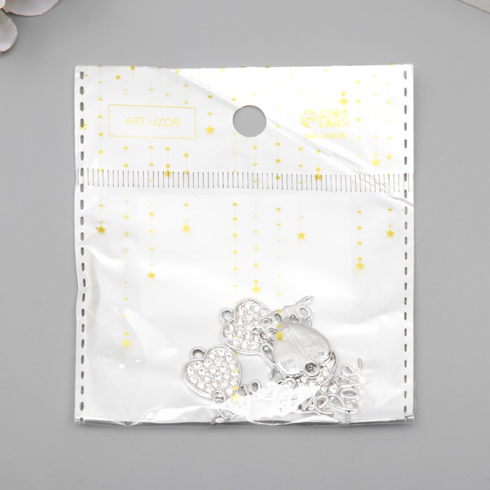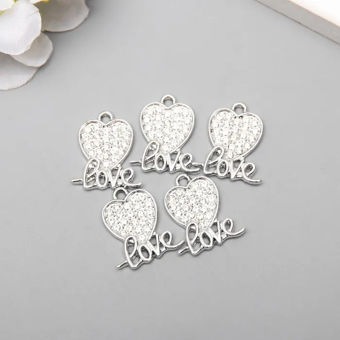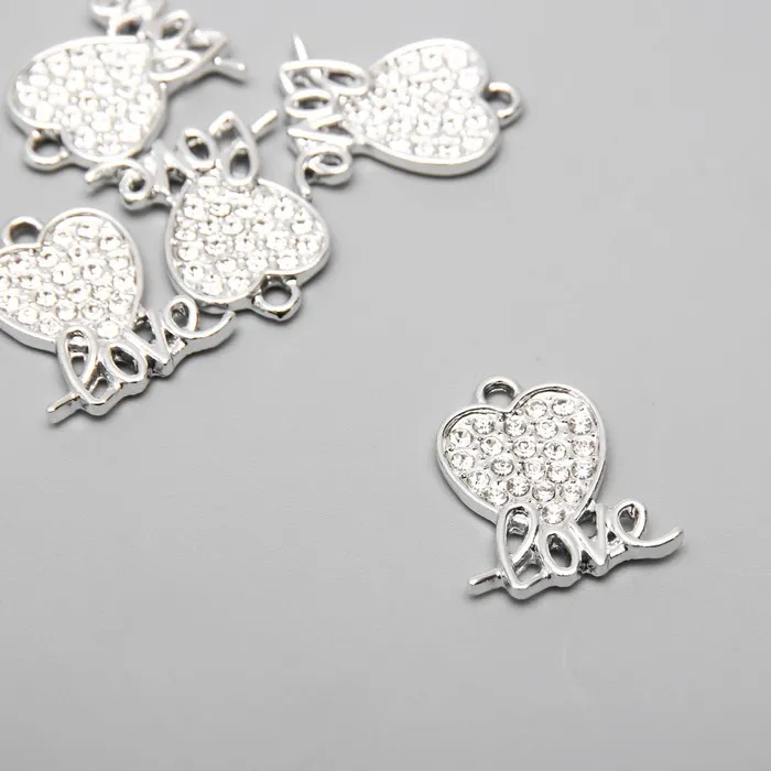 Декор для творчества металл, стразы «Сердечко с надписью», под серебро, 0.2×1.8×2.1 см — Характеристики