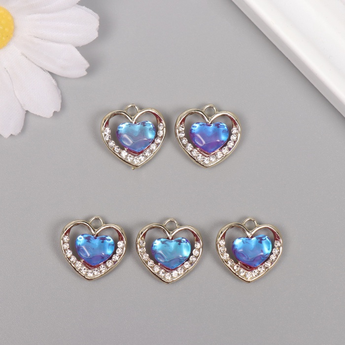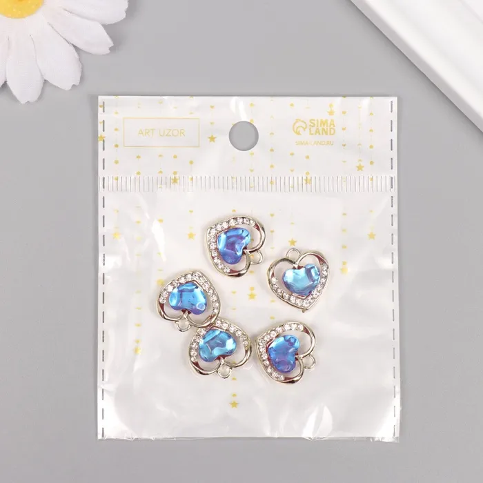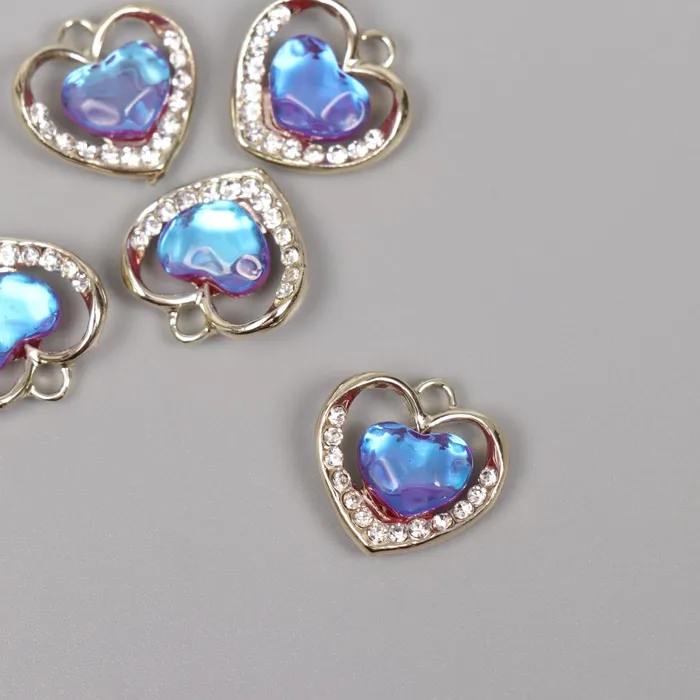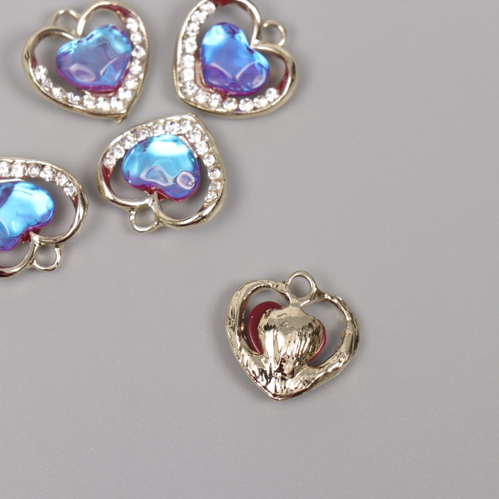 Декор для творчества металл, стразы «Сердце океана», золото, голубой, 1.7×1.7×0.5 см — Характеристики