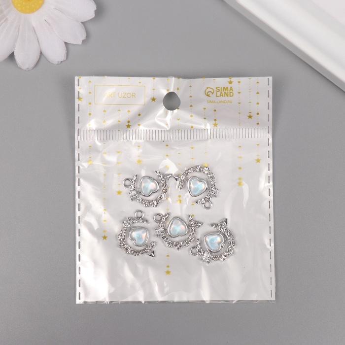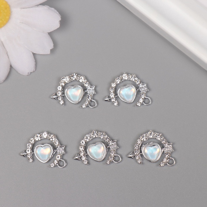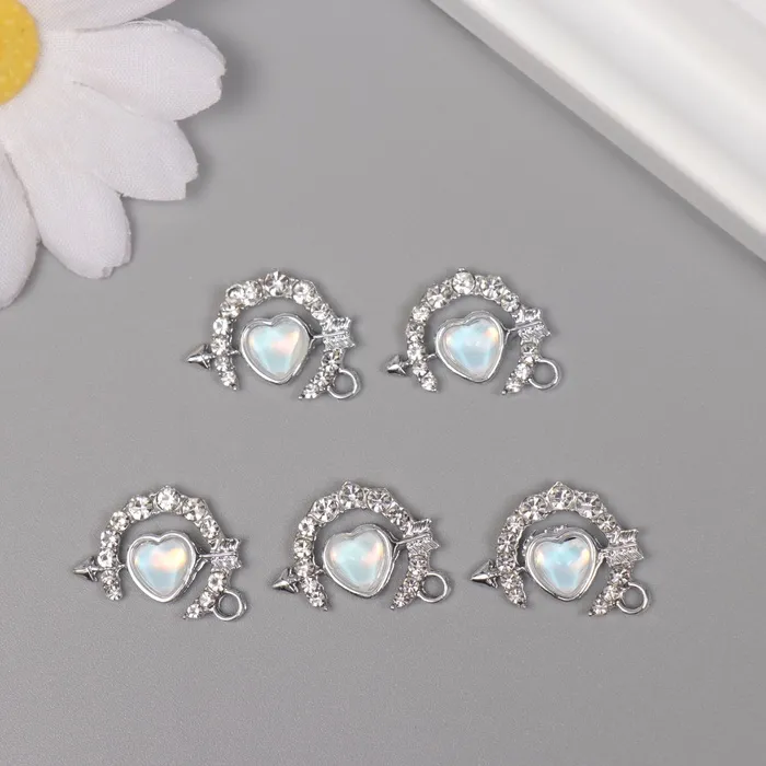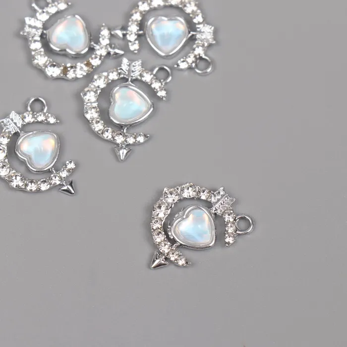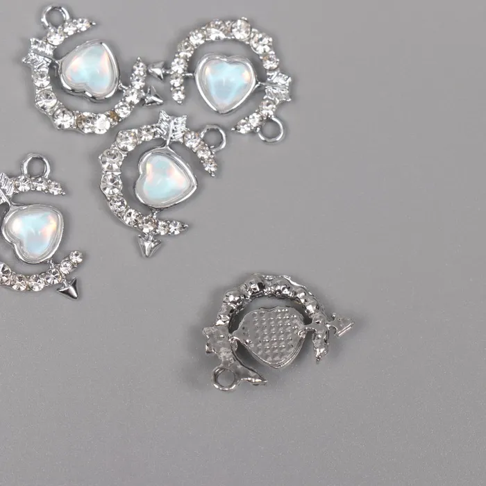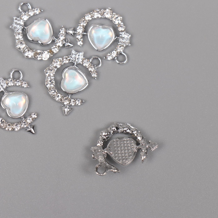 Декор для творчества металл, стразы «Сердце в месяце», серебро, 2×1.5×0.5 см — Характеристики