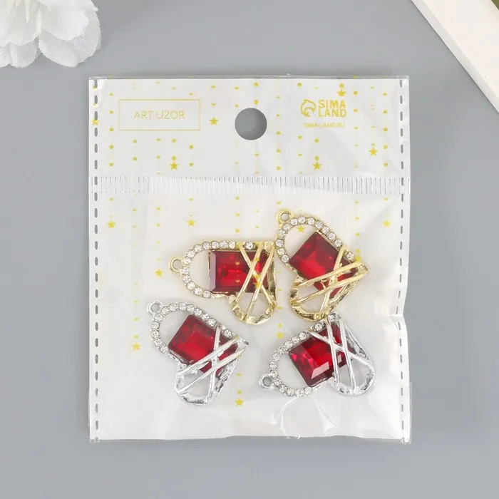 Декор для творчества металл, стразы «Сердце в переплёте», 2.7×2.2 см, МИКС — Характеристики