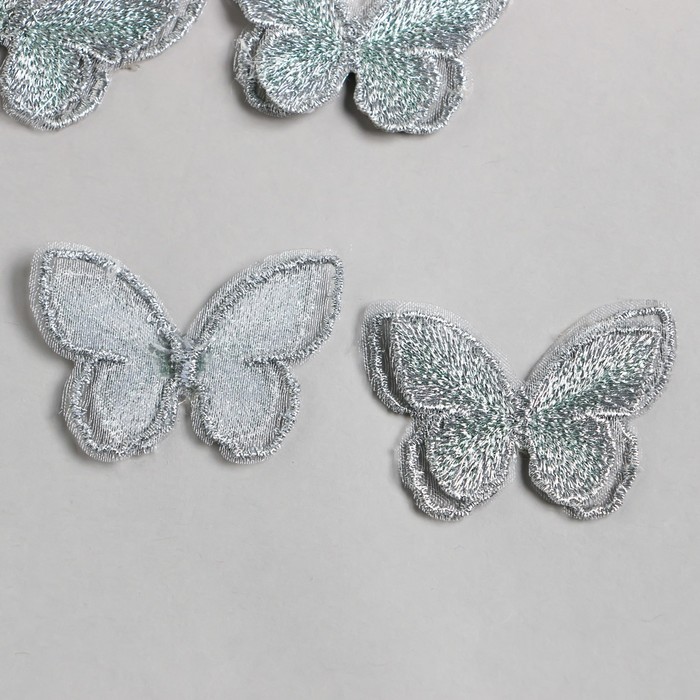 Декор для творчества текстиль вышивка «Бабочка серебристая», двойные крылья, 3.7×4.5 см