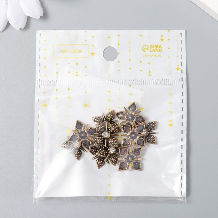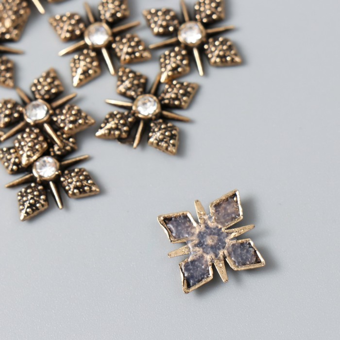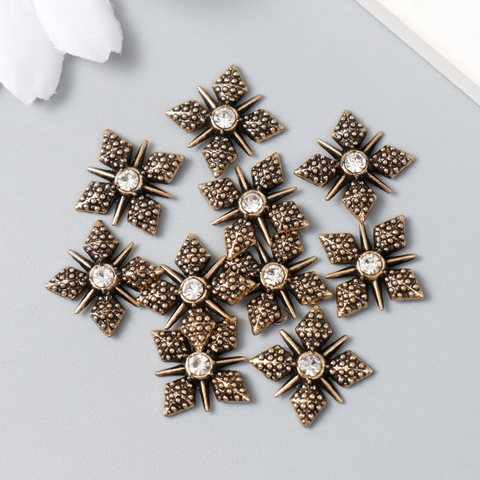 Декор для творчества металл, стразы «Цветок с лучами» набор 10 шт. бронза 1.2×1.2 см